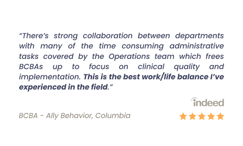 We prioritize low case-loads, transparent communication, and community building to ensure our BCBAs have a healthy work-life balance and can dedicate their time towards high quality service. Our Clinical Quality team is ready to support you whenever aid is needed, and professional development is always available through case reviews, CEUs, promotion ladders, and more!