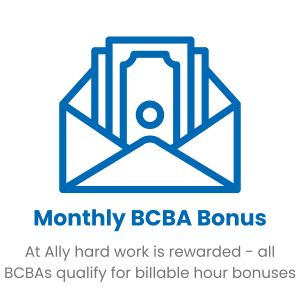All BCBAs at Ally Behavior Centers receive more than just a paycheck - they are supported with a well-rounded package of benefits designed to provide stability, reward excellence, and encourage continued professional growth. From guaranteed full-time salaries and monthly billable hour bonuses to generous time off, comprehensive insurance, and tuition assistance, our benefits are built to support every stage of your career and personal life.
